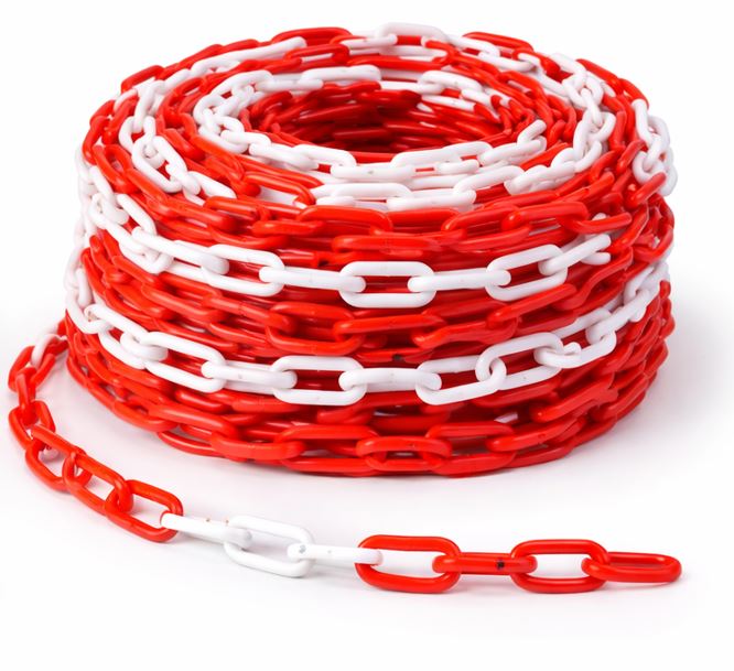 Absperrkette aus PP – 6 mm, 50 m Rolle rot/weiss