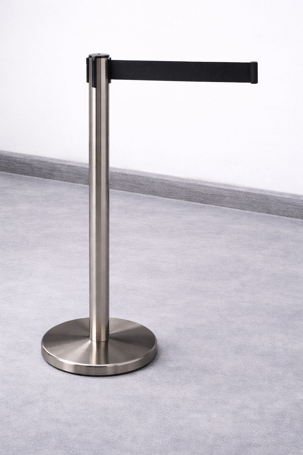 Der stabile Pfosten besteht aus rostfreiem Edelstahl und ist mit einer schweren Metallbasis ausgestattet, die für einen sicheren Stand sorgt. Das integrierte schwarze Zugband aus strapazierfähigem Polyester lässt sich flexibel ausziehen und ermöglicht eine schnelle sowie einfache Abgrenzung von Bereichen. Mit einer tatsächlichen Auszugslänge von 1800 mm bietet der Gurtpfosten ausreichend Reichweite für unterschiedliche Einsatzbereiche.