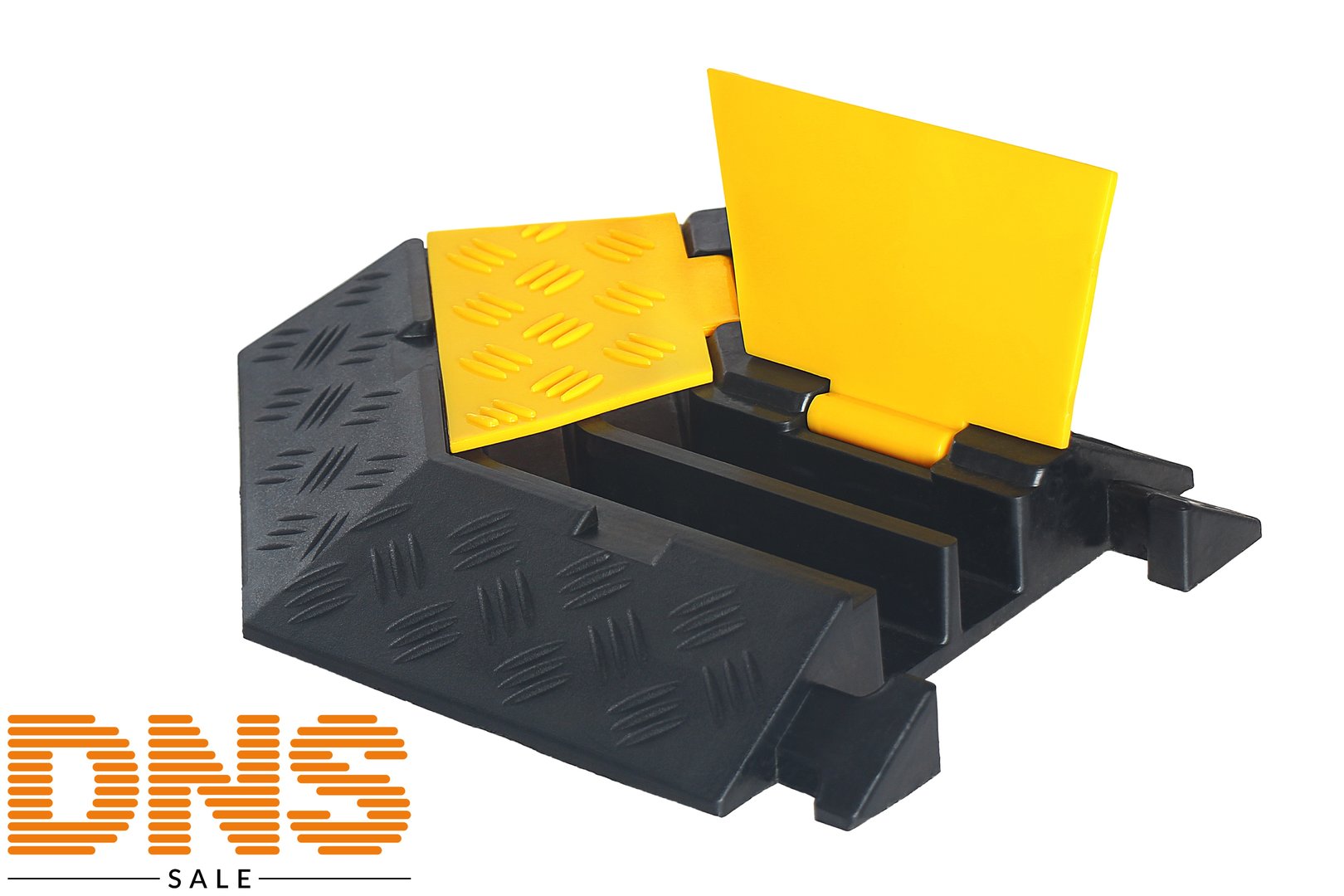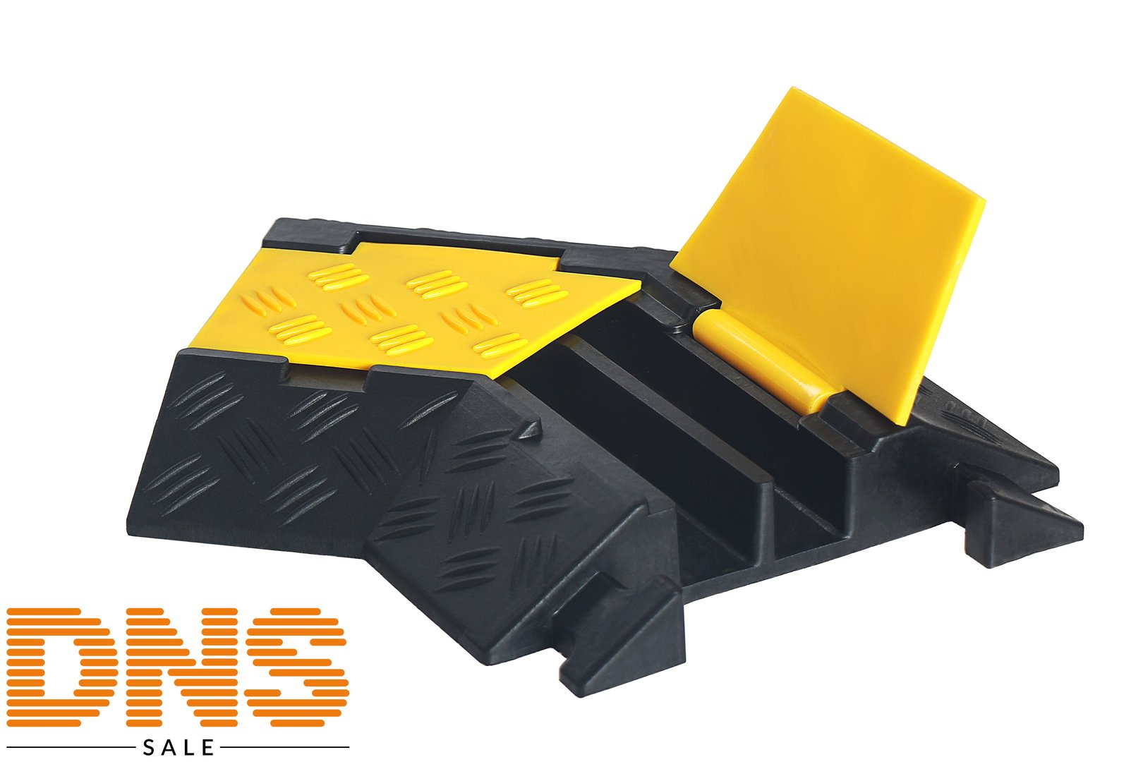 Ideal vor Kabelbruch schützen und Stolperunfälle vermeiden. Die Kabelbrücke 2 Kanal, steckbar, ermöglicht das problemlose Überfahren und den Schutz von Kabeln, kleinen Schläuchen oder Rohren. Die Kabelbrücke ist aus einer speziellen, vulkanisierten Hartgummi-Mischung gefertigt und erzeugt durch den gelben Deckel aus Polyethylen eine optimale Signalwirkung. Das Element kann dank der speziellen Zapfen bzw. des Nut-Systems beliebig erweitert werden und endlos viele Kabelbrücken aneinander montiert werden. Die Kabelbrücke 2 Kanal, steckbar hält problemlos Belastungen bis 40t stand, wobei das Überfahren von Schwerlastfahrzeugen vermieden werden sollte. Dank integrierter Dübelaufnahmen ist eine dauerhafte Fixierung problemlos möglich.