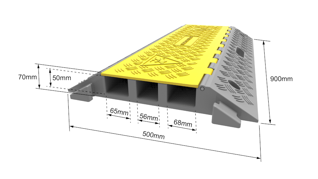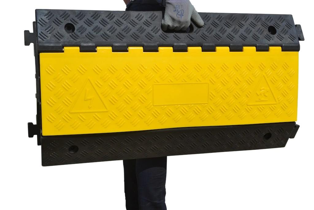 Dieser robuste Überfahrschutz wurde aus einer speziellen, vulkanisierten Hartgummi-Mischung gefertigt und bietet maximalen Schutz für Kabel und Leitungen in Bereichen mit hohem Verkehrsaufkommen. Mit seinen drei großzügigen Kabelkanälen ist er ideal für den Einsatz auf Baustellen, bei Veranstaltungen oder in Industrieumgebungen geeignet. Die geriffelte, rutschhemmende Oberfläche sorgt für zusätzliche Sicherheit, und die Konstruktion ist für schwere Lasten ausgelegt, sodass Fahrzeuge mit einem Gesamtgewicht von bis zu 40 Tonnen problemlos darüber fahren können.