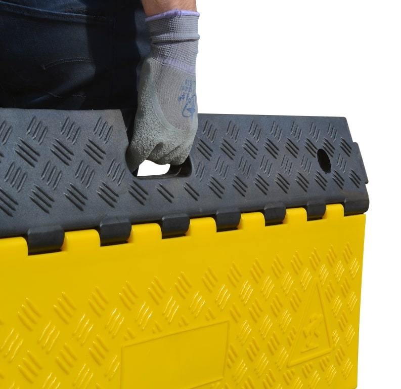 Dieser Überfahrschutz bietet eine zuverlässige und langlebige Lösung für den Schutz von Kabeln und Leitungen und ist für den harten Einsatz konzipiert. Ideal für den Innen- und Außeneinsatz. Erhältlich bei DNS Sale.